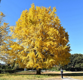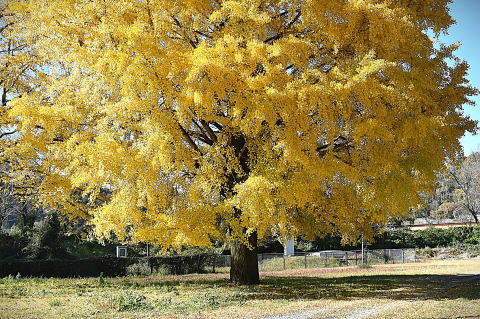 植えられた大イチョウは、黄金色に輝き大きく高く存在感を魅せていた。