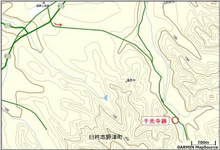 目的地の「千光寺跡」は、野津町福良木地区に所在しており、現地までのアクセスは色々考えられるが、県道204号線(津久見野津線)や県道633号線(川登臼杵線)などで田野地区に向かっていく。やがて、高台の小さな三差路があり、「これかな?」周りを見ながら右折する。