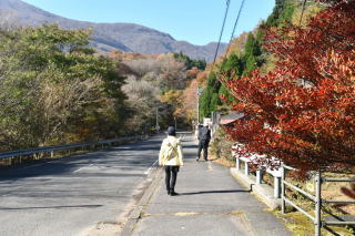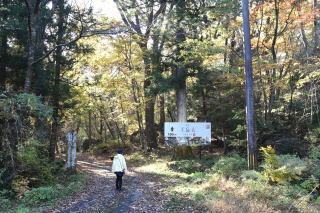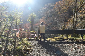 そして「名水の滝」入口に到着。「ん?」なんと「通行止」となっていた。理由は“法面崩壊の恐れあり”となっていたが残念。去年の夏も訪れた「名水の滝」だが、滝姿と紅葉は望めなかった。(調べたら“2024年8月の台風により名水の滝へ立ち寄ることができなくなっています。”などとなっていた。)