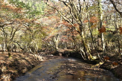 朝晩の冷え込みはもうすっかり初冬の気配となってきた。 紅葉景色も気になり、イメージを膨らませながら黒岳山麓に向かった。 黒岳山麓はこれまで何度か訪れており、湧水と豊かな原生林は、それだけでも癒されるが、紅葉の季節はどうだろうか。