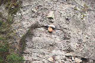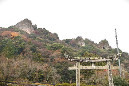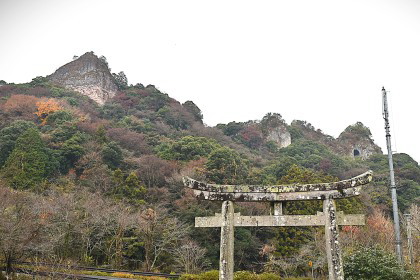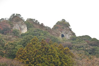 「熊野摩崖仏」はこれまで2回ほど、鋸山コース(2008年,2013年)で登っているが「ウトノアナ・ゼゼノサマ」のことは、全く知らなかった。 鳥居をくぐったところで、後ろを振り向くと「わっ、すごい! あれのことだろう」 高い岩峰群があり、赤味を帯びた「ゼゼサマ(善神王様)」やポッカリと穴の開いた「ウトノアナ(洞の穴)」などが望める。