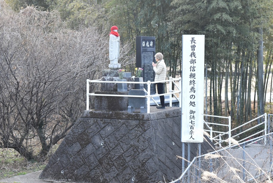 「戸次川古戦場跡」の案内塔から、1.5kmほど南下したところに「長曾我部信親終焉の処」があり、お地蔵さんと鎮魂碑が建立されていた。