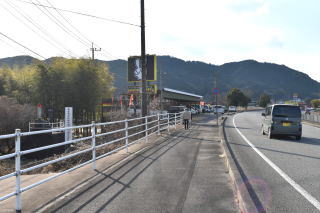 国道10号線を南下し、「大南大橋先」交差点を過ぎた右側に、先述の「戸次川古戦場跡」案内塔があり、前方には鶴ケ城跡の利光山が大きく迫ってくる。 約1.5km後、左側の道路下に赤い帽子のお地蔵さんが見えてきた。「あれだ!」