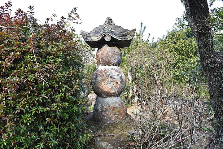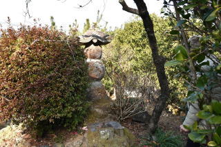 墓地に向かう道を歩きはじめると、すぐに公園のような広場が見えてくる。その直前右側に「鎧塚」の標識があり、回り込むと墓地の一角に長曾我部信親の鎧と言われる「鎧塚」が祀られていた。