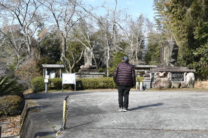 今からおよそ400年前のこと、四国から援軍としてこの地に赴き、お供の兵士700余人と共に、壮烈な戦死となった。さぞかし無念なことでしょう。そっと、手を合わせ鎮魂塔を後にする。 それにしても今日は寒い。気温は5℃、風も強く、たまらない寒さとなっている。