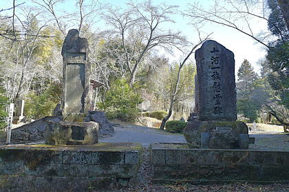 遊歩道に戻り、奥に進むと公園化された広場となっており、周りにはいくつかの石碑や石塔などが立ち並んでいる。