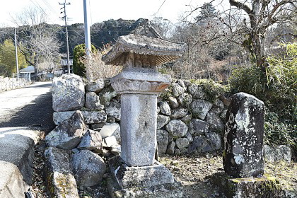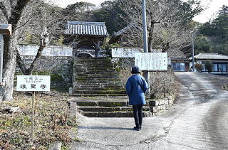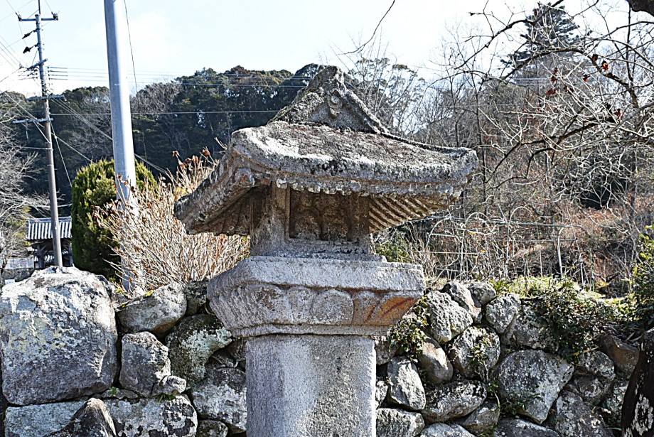 今日2月3日は節分。明け方は寒かったが、陽射しにぬくもりを感じるほどの天気となっており、歩きはじめた参道の右側に「あっ、これだ!」 護聖寺の参道には、室町時代に建立された石殿があり、県指定文化財になっているという。
