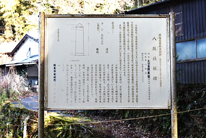 長い説明文の一部に“八坂社のある弁分の地が、神領であるとともに宇佐八幡宮と密接な関係にあったことをうかがわせる。”などとなっており、地域と時代の背景が窺がわれる「八坂社板碑」でした。