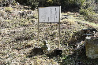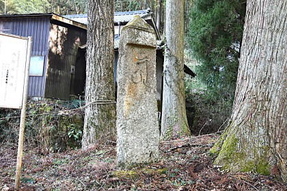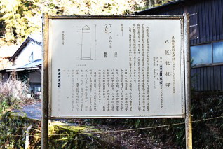 「五霊社」のすぐ下側に、文化財の板碑と説明板が立っていた。これも、解説図が添えられた長い説明文だが“県指定有形文化財:八坂社板碑:元弘3年(1333):総高202cm:三角山形、2条の彫り込み線、額部、身部の構成で一石をもって彫成している。”などとなっている。