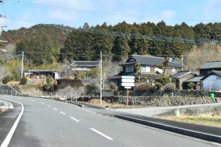 市道に戻り、さらに北上していくと県道405号線(成仏杵築線)とも合わさり、さらに約2km後、右側に「護聖寺」などの案内板が立っていた。「よっしゃ、ここだ!」
