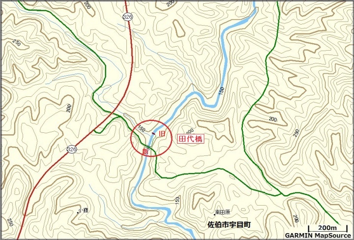 国道326号線を南下し「宇目町上小野市交差点」から約4km後、南田原の交差点を鋭角的に左折し、400mほどの所にコミュニティバス停「田代橋」があり、目的の「田代橋」に到着。