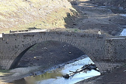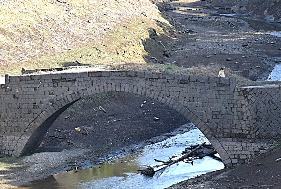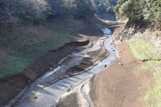 それにしても、渇水の状況が深刻に映し出さており、写真に題を付けるなら「ダム湖から姿を表した幻の石橋」がふさわしい、北川ダムの「田代橋」でした。