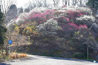 宇目町を東西に走る県道39号線(小野市重岡線)を行き、千束の丁字交差点から南に約1km後、「わ~、きれい~」 目的の「八匹原公園」入口に到着し、紅梅・白梅の大歓迎となっていた。横には広い駐車場もある。