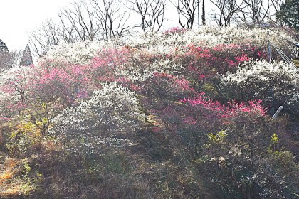庚申塔群を見て、頂上まで上がってみたが、梅の花は途中で桜の木に変わり、展望エリアにはぐるっと桜が植えられていた。