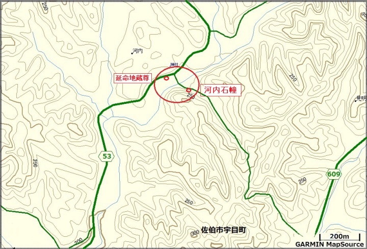 「八匹原公園」で文化財を見たついで、ではないが、それほど遠くない位置に市指定文化財の「河内石憧」が所在しており、立寄ってみることにした。 先の千束交差点から県道53号線(野津宇目線)に進み約1.7km後、「あっ、あれは?」