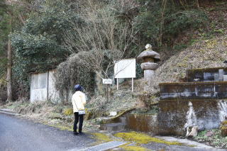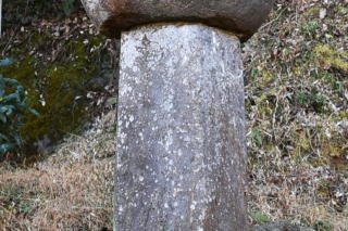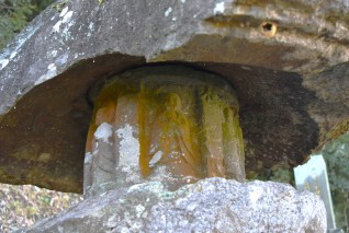 車は置いたまま、三差路の案内板「河内石憧」に従いながら進み、小さな川を渡った直後、右斜面に「あれだ!」 大ぶりの「河内石憧」が現れてきた。