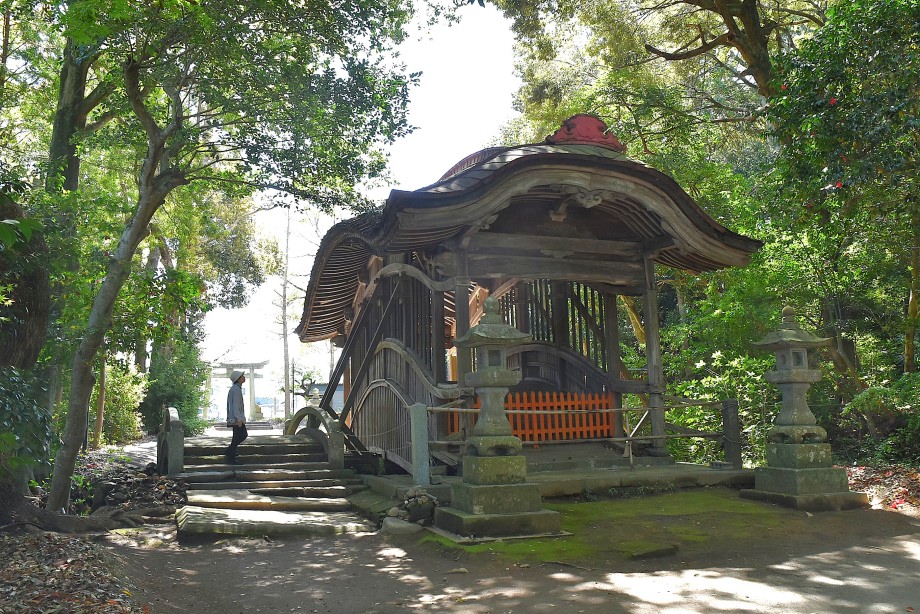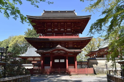 薦神社の神門は江戸時代初期の形式で、「裳階付き三間一戸二重門」で学術的にも重要な建築物であり、国指定重要文化財になっている。