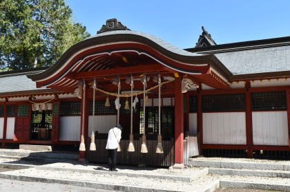 広い境内だが、先ずは、ご神門と社殿へ向かってみよう。 境内の通路(参道)は左を取り、大きな楠木に向かう。
