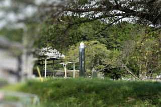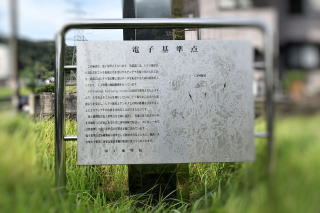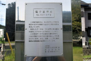 その説明板にも詳しく記されているが、ポールの中ほどに「説明文」が刻まれており“基本電子基準点NO,021079:この電子基準点は、地上約2万kmの高さを周回するGPS衛星から出された電波信号を受信しています。 受信データは、つくば市にある国土地理院にリアルタイムで転送されています。この受信データで正確な位置を求めて、土地の測量や地図作成の基準点として利用されています。また、地震・火山噴火等の重要な地殻変動の監視を行っています。:国土地理院”などと記されている。