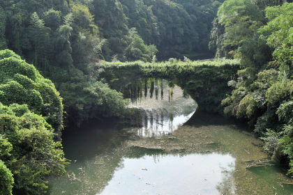 臼杵市の山奥には、ダム湖に浮かぶ「まぼろしの石橋」があるという。