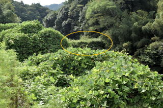 乙見橋の袂に戻ると、「近戸橋」に向かうような分岐路があり、民家の前を歩いて行くと「こんにちは~」家の前に人が居り「そん先じゃが、今はもう、行かれんじゃろう。」などと、教えていただきました。 段差の先に続く草道を指さしていたが、傍に行くと「とても、とても」現実的ではなく、「近戸橋」までの探訪は断念した。
