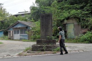 乙見橋を渡り終わって、さらに約80m後、右カーブの三差路に大きな石碑が置かれていた。情報では、この場所に移設されたそうです。 石碑の右から「道路橋梁記念碑」:大正四年春建石」と刻まれており、縦書きの碑文は、すべて漢字で陰刻されている。その内容は、多岐にわたっているようだが、中ほどに「近戸橋」の文字も見え、文末には、発起者名として、川登村長、田野村長、南津留村長の名が連名で刻まれていた。