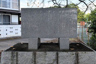 |  それと並んで幾つかの説明板があり、右脇の小広場に導かれていく。「あっ、これだ!」目的の自然災害伝承碑(小倉池改修記念碑)に到着。