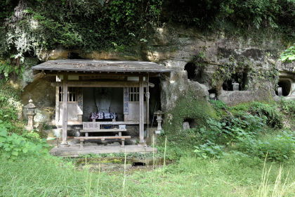 |  崖に造られた横穴は、数も年代も判らないが、「千手観音横穴墓群」には驚くばかりです。